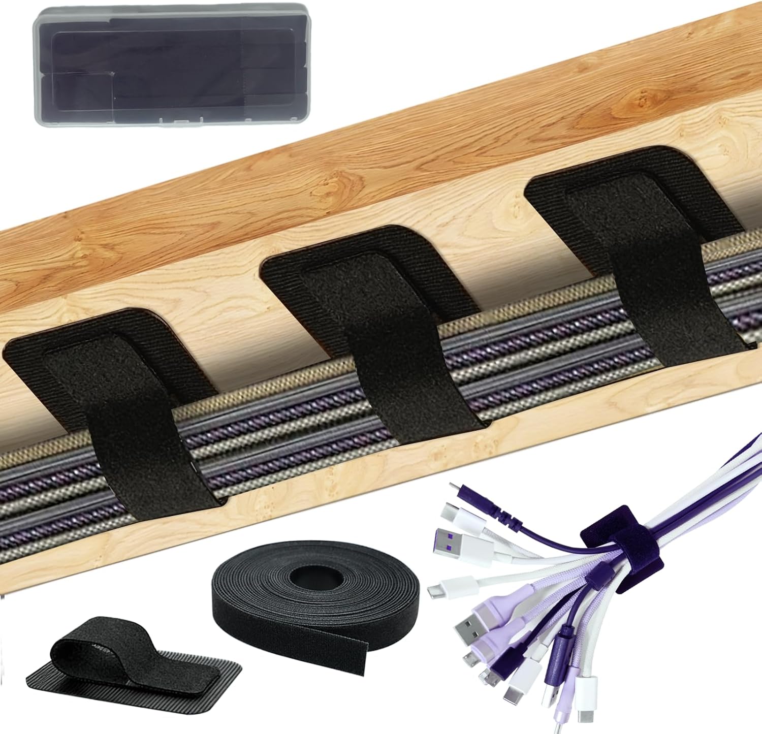 Keeps charging cables, power cords, and wires tidy and accessible