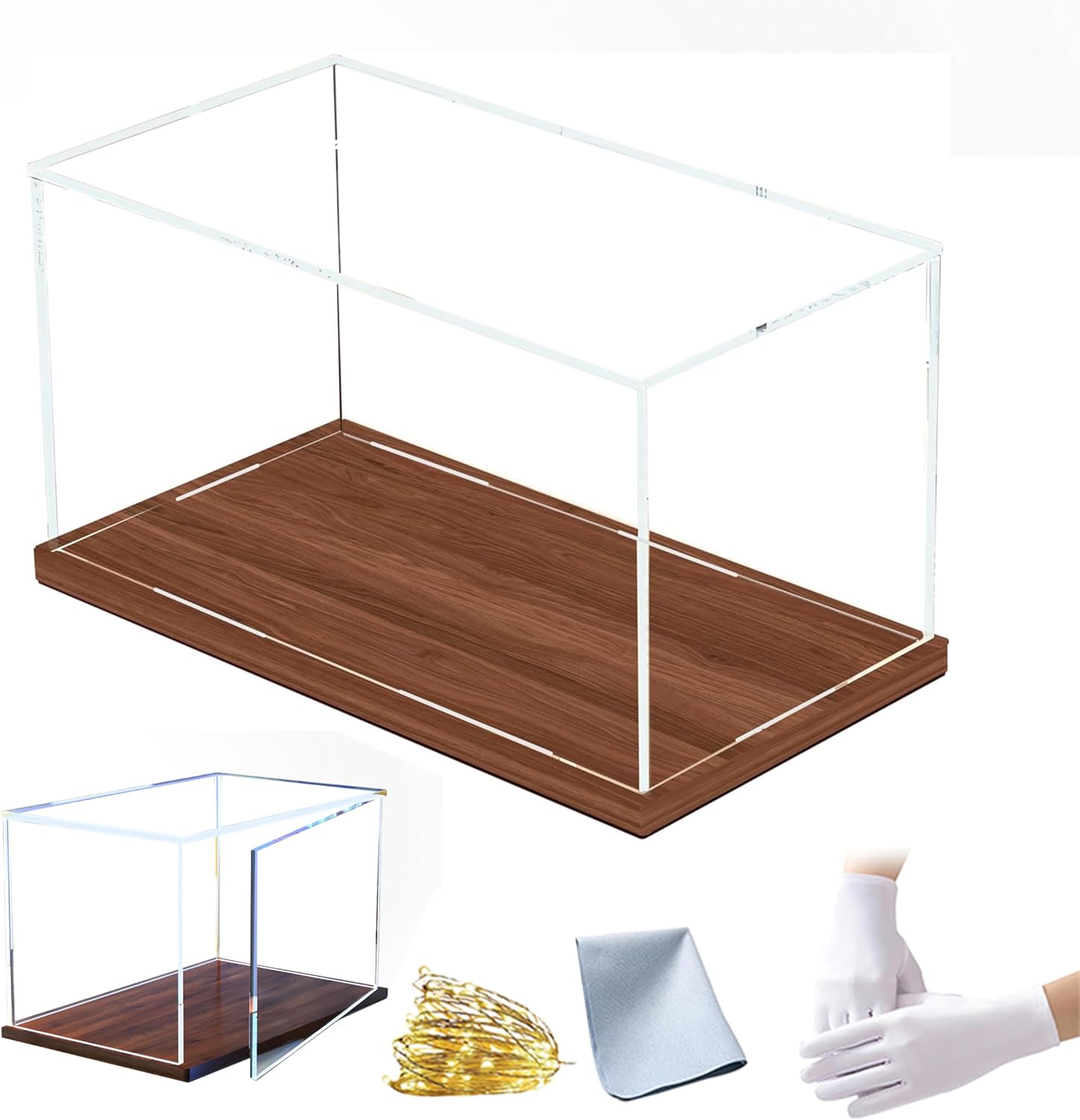 Clear acrylic display case with wooden base—perfect for collectibles and hobbies
