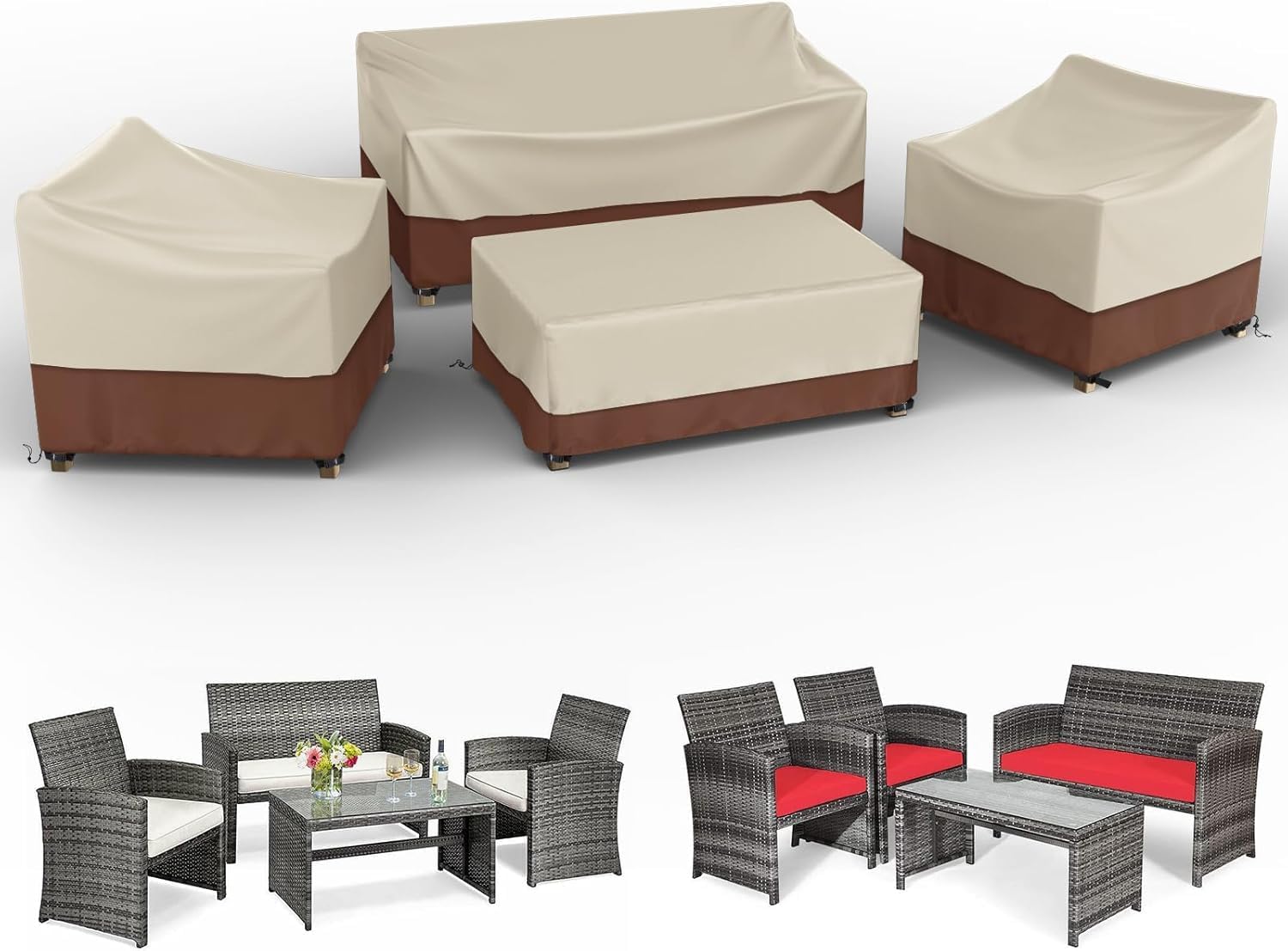 Two-Tone Aesthetic Design: Features a stylish Beige and Brown color-blocked palette that complements modern patio decor, offering a more sophisticated look than standard industrial-grade black covers.